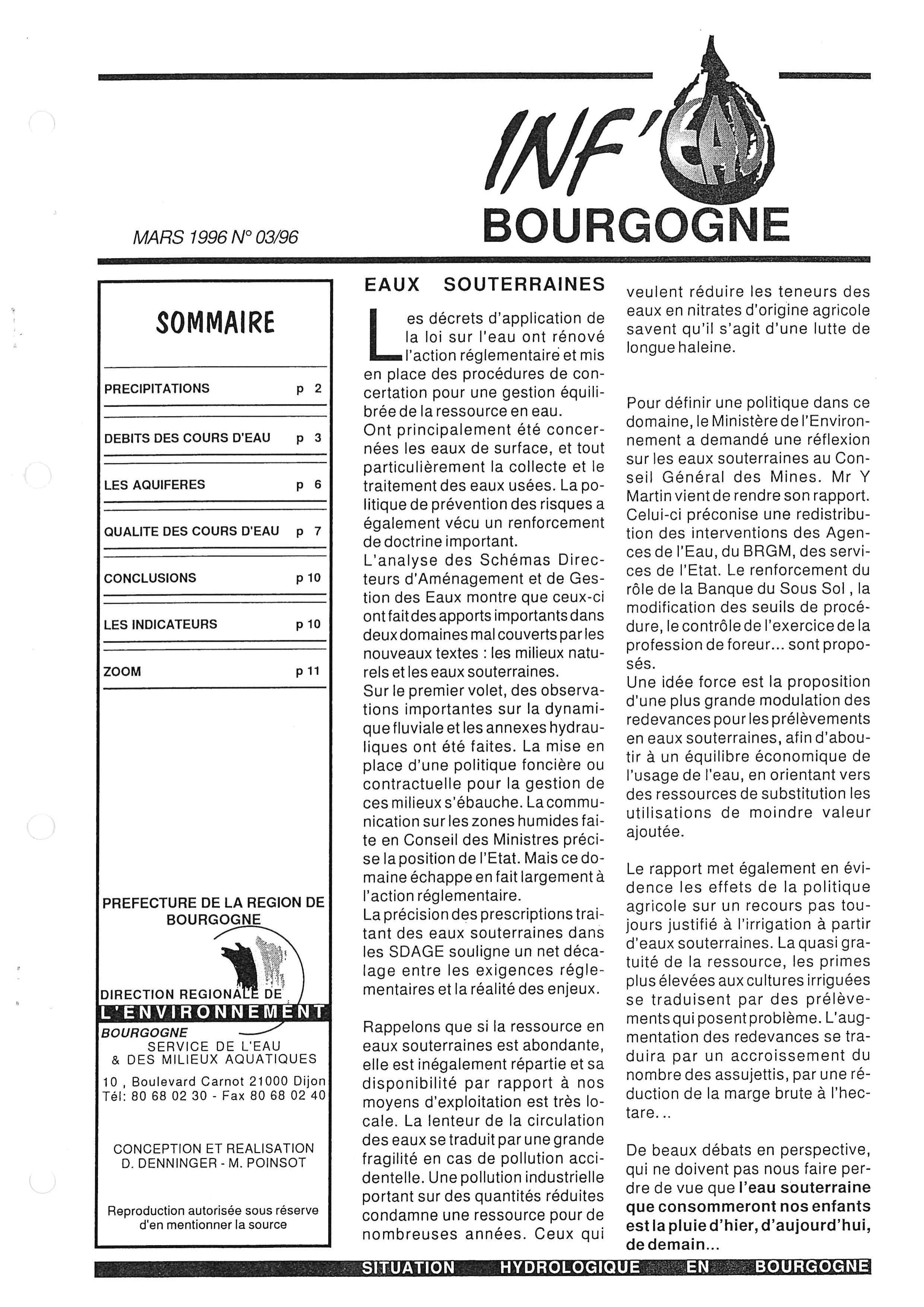 Bulletin hydrologique mars 1996