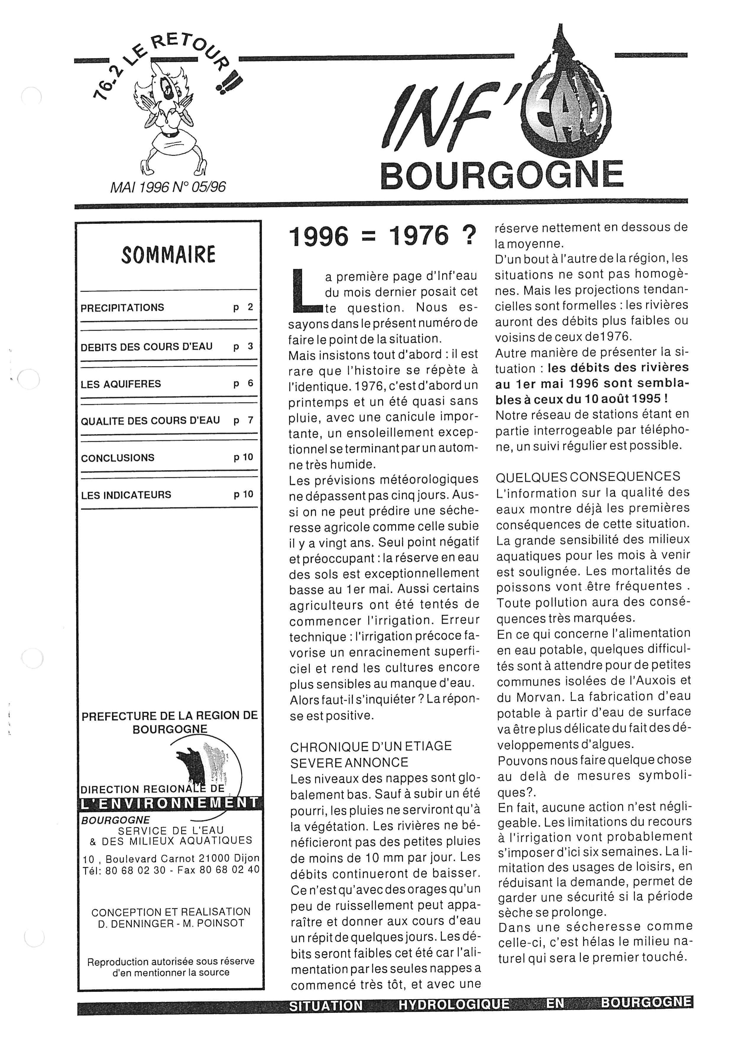 Bulletin hydrologique mai 1996