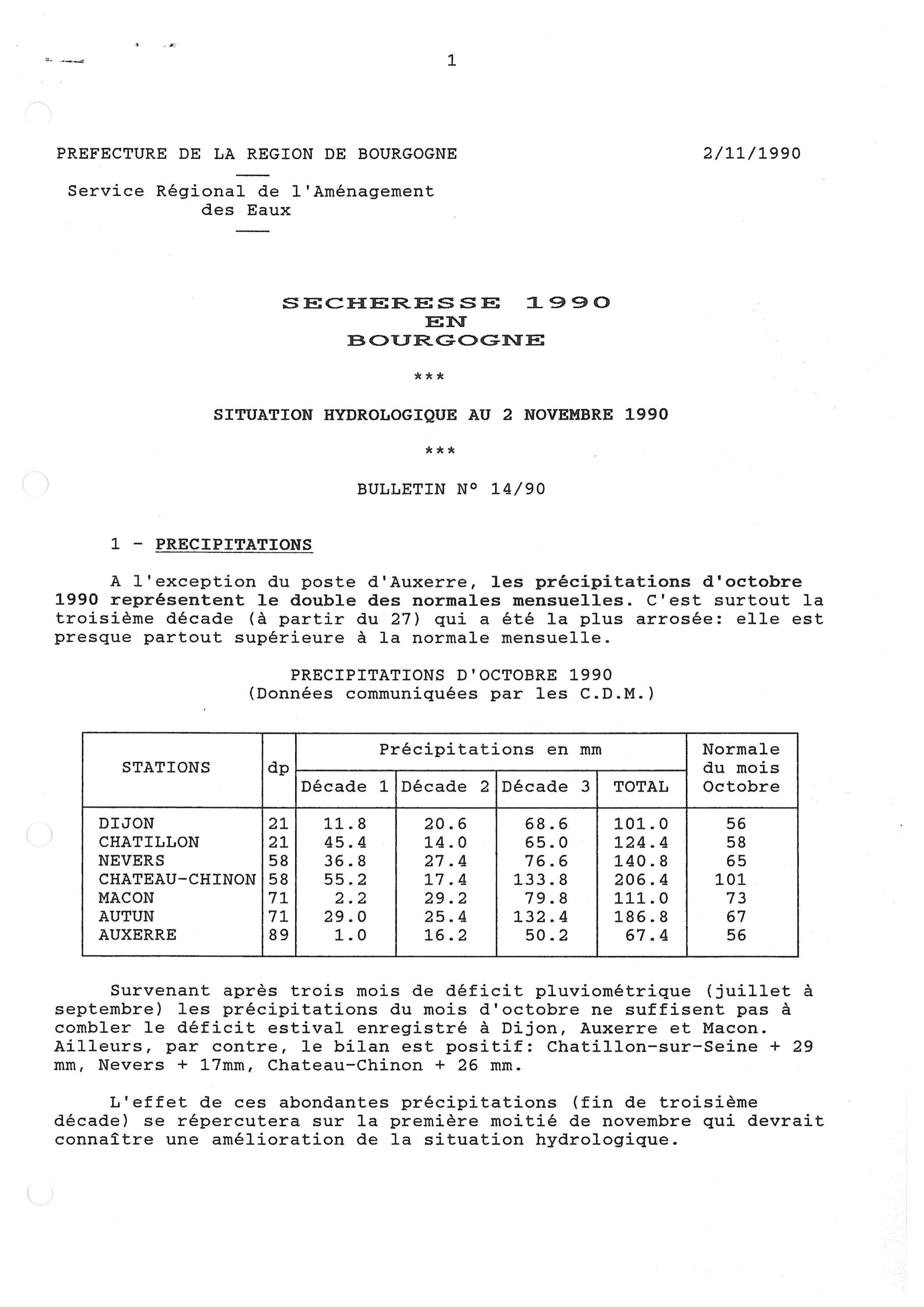 Bulletin hydrologique octobre 1990