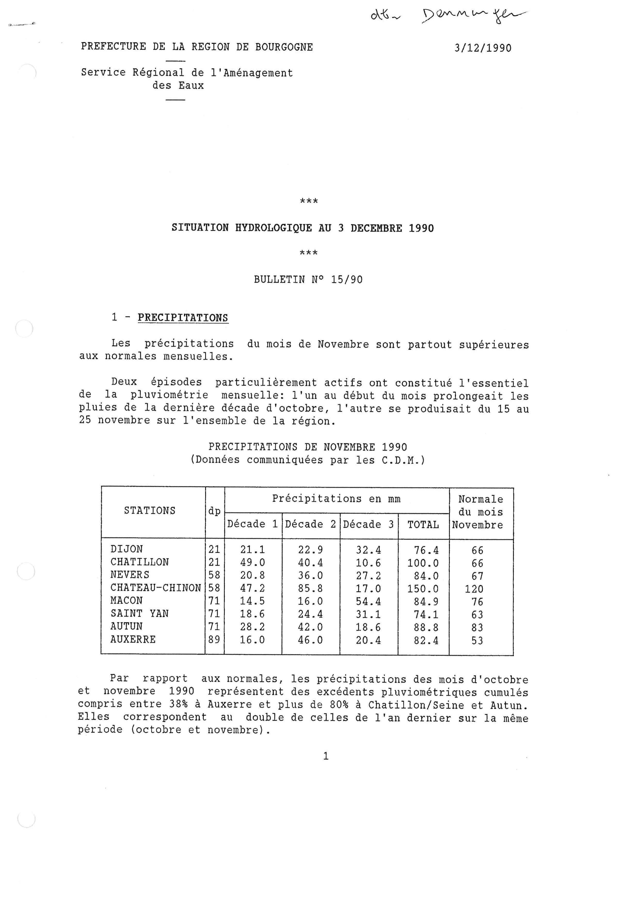 Bulletin hydrologique novembre1990