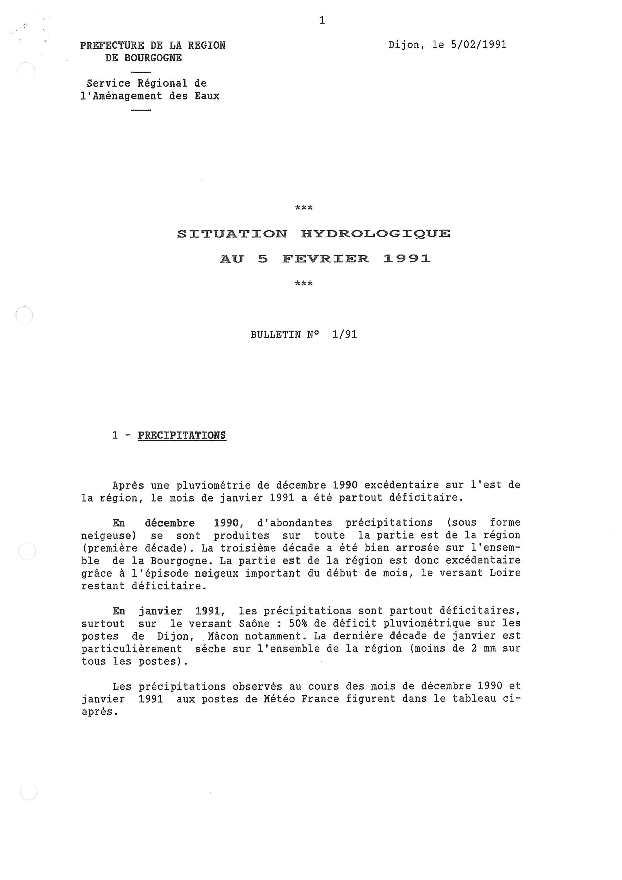 Bulletin hydrologique décembre 1990 et janv 1991