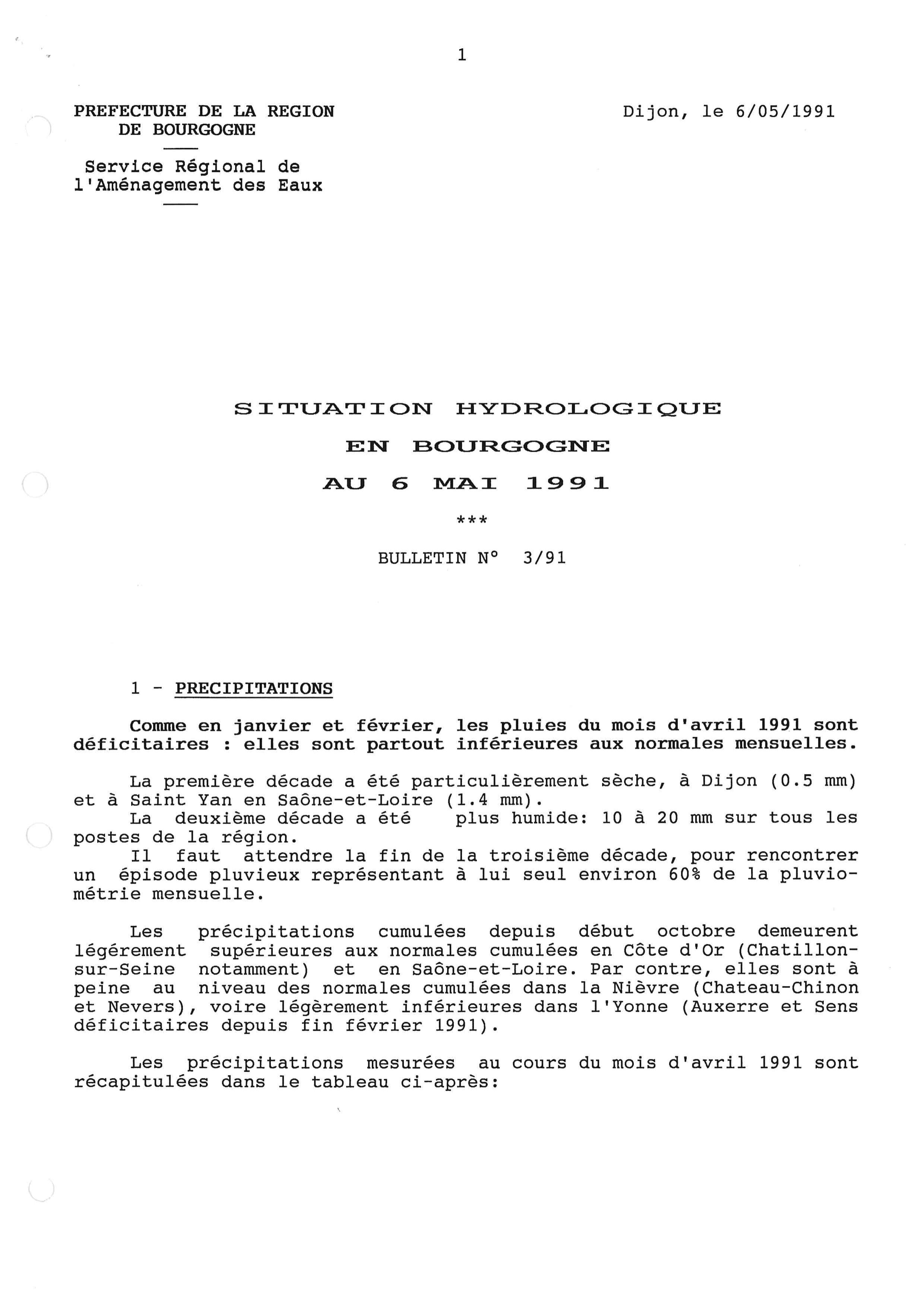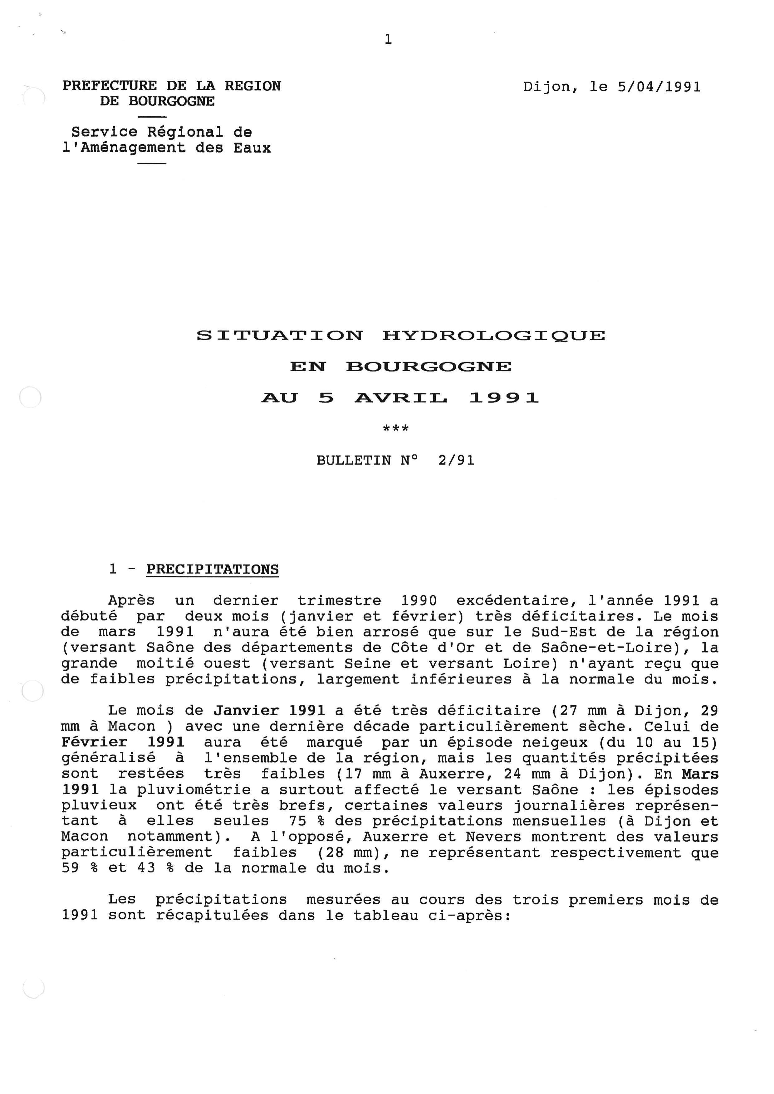 Bulletin hydrologique avril 1991