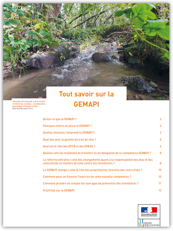 avec notamment l'essentiel à savoir sur la GEMAPI et son impact sur les ouvrages de protection ainsi que la Foire aux questions mise à jour - le Centre Européen de Prévention des Risques d'Inondations (CEPRI)