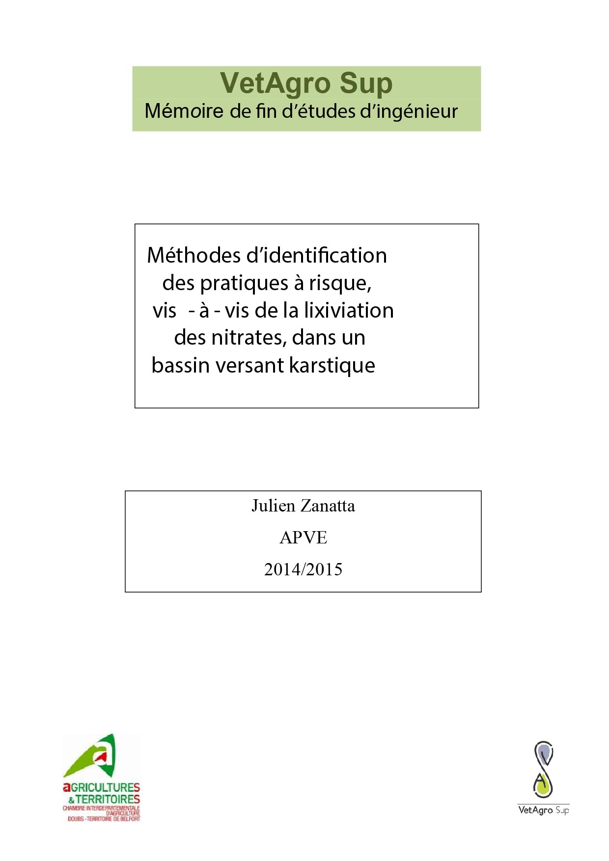 Méthodes d’identification des pratiques à risque, vis-à-vis de la lixiviation des nitrates, dans un bassin versant karstique