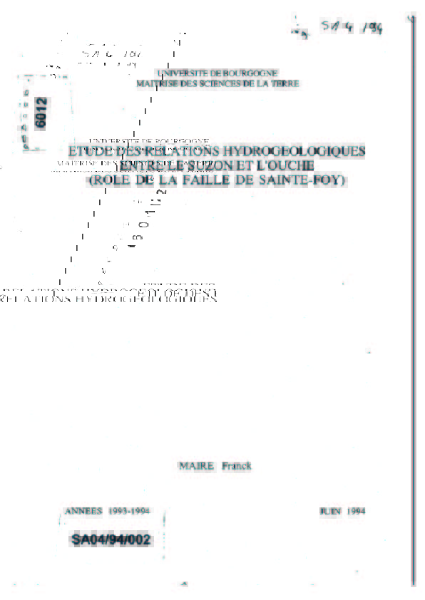 Étude des relations hydrogéologiques entre le Suzon et l'Ouche (rôle de la faille de Sainte-Foy)
