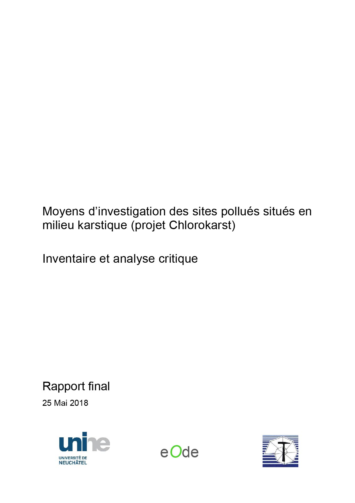 Moyens d’investigation des sites pollués situés en milieu karstique (projet Chlorokarst). Inventaire et analyse critique